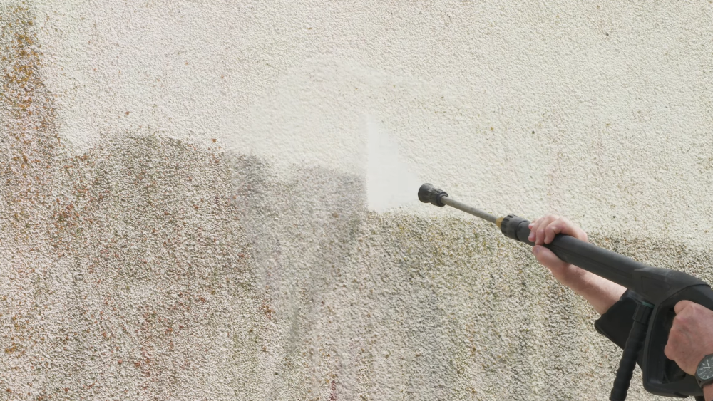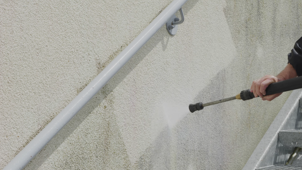 Змити водою під високим тиском (приблизно 100 бар).