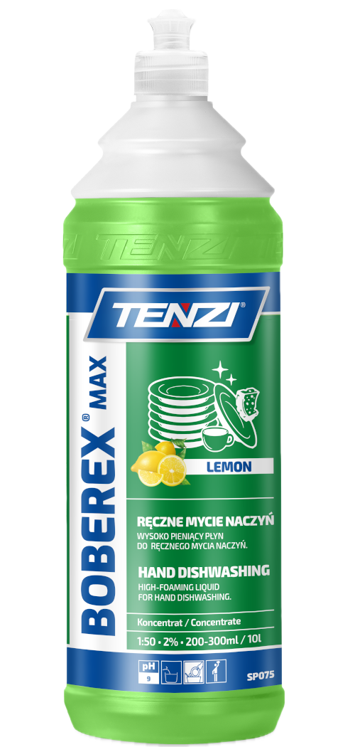 TENZI BOBEREX надзвичайно простий та економний у використанні - достатньо невеликої кількості рідини для ефективного миття великої кількості посуду.